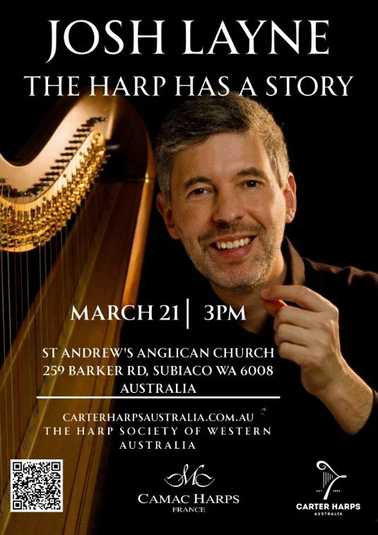 Buy tickets at Humanitix: Josh Layne Harp Concert St Andrew’s Anglican Church Subiaco Western Australia March 21st 2026